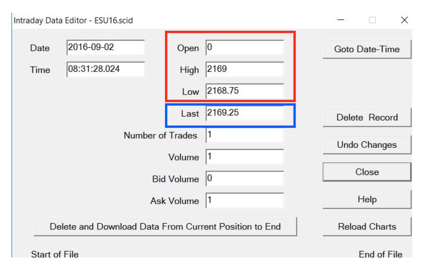Hi SC, I set my "Intraday Data Storage Time Unit" to 1 tick (as shown in 1.jpg), downloaded an intraday data file, then opened the "Intraday Data Editor" via pressing the button shown in 2.jpg and was brought to 3.jpg. Does the area circled in blue in 3.jpg represent 1 tick? If so, what do the numbers circled in Red in 3.jpg represent? Shouldn't the numbers circled in red be the same as the number circled in blue? Date Time Of Last Edit: 2016-12-16 01:26:13