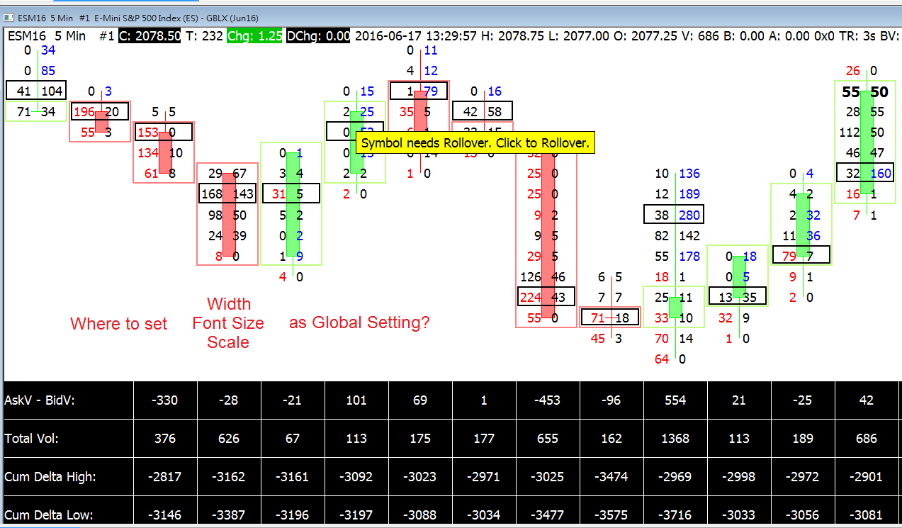 I would like to know on where to set the width, scale and font size for each bar on Global Setting, as shown on attached image, so when I open a new chart, the default setting would be applied. Furthermore, I would like to know on how to show the price level based on the mouse cursor's location. Do you have any suggestions? Thanks, to everyone very much for any suggestions Date Time Of Last Edit: 2017-01-21 00:55:18