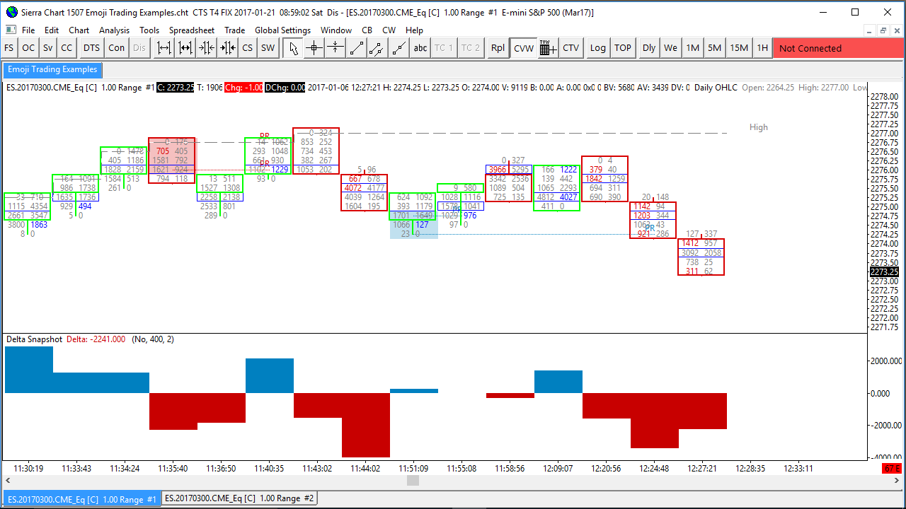 We've just released version 2 of the emoji trading Order Flow Suite - 20+ indicators to make interpreting Numbers Bars and traded volume crystal clear. Version 2 takes full advantage of new Sierra Chart features and exposes all indicators via subgraphs to assist development of automated ACSIL trading systems, spreadsheet trading and alerts. As part of the release, two indicators are being made available free of charge: • Delta Surge • DOM Pressure (graphical indication on-chart of DOM pulling/stacking) and all Sierra Chart users are most welcome to download them via www.emojitrading.com Regards Lee. |