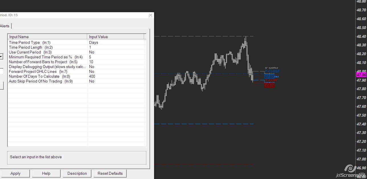 you are not understanding , yes very simple , nothing changes with forward project lines , so ill make this my last post but if this picture looks correct to you for prior day ohlc , then maybe im crazy lol and line extend to edge is not the greatest drawstyle for this , makes no sense to extend them that far , they are perfect now . but ill put this to rest since from my picture its so simple i must be wrong |