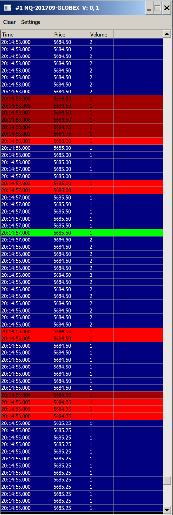 BID_ASK_TRADE_SYNC are saving all lines from screenshot. Blue lines are not trades but only changes of L1 quotation. Block of trades what are not breaked by blue lines are trades with same microsecond (compared with IQ feed). After a market order comes and get filled, new blue line have to be generated - bacause aggressive market order has changed the passive side. But there not exist 100% relationship TickId and microsecond timestamp. You can have more tickids with same microsecond. |