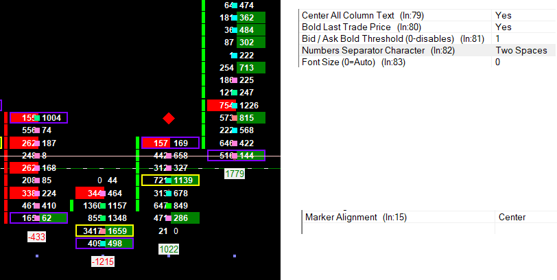 If you use the LargeVolTradeIndicator in connection with NBs you can't read the figures correctly. The separator for NBs is set on two spaces and the marker alignment for the Indicator is centered. I tried different ways but no satisfactory solution. Is it possible to adjust the indicator for NBs. |