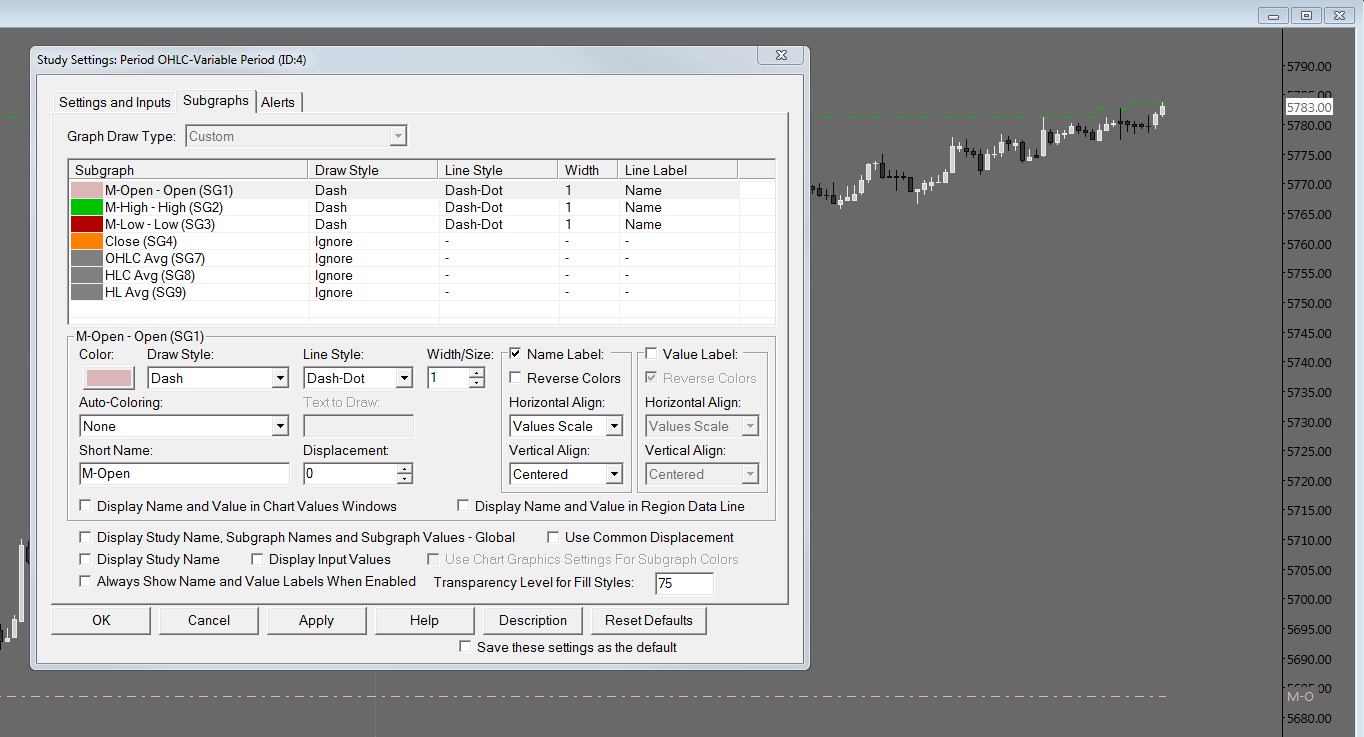 How do I stop the Period OHLC Variable from drawing in a "stair step" style? The Weekly and Daily are fine but the Variable has to be constantly refreshed to keep a horizontal line.