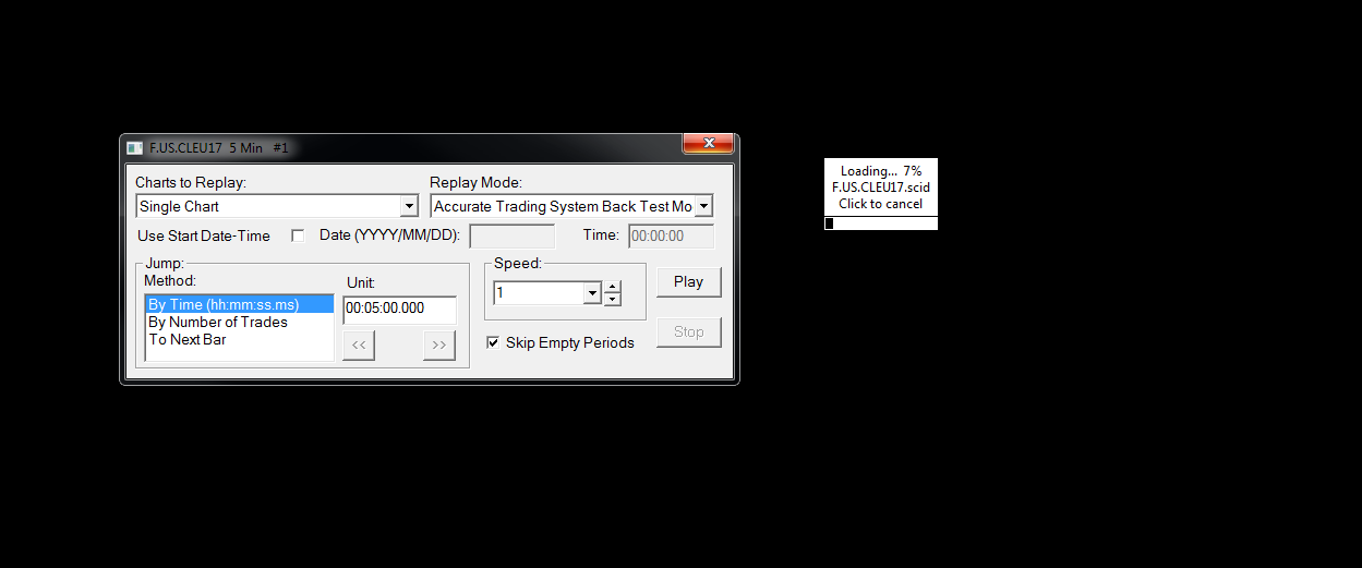I'm wanting to replay a chart and the program is locking up when I try to replay. I thought maybe my data was bad so I deleted all the data and tried from scratch and still getting the issue. When the chart starts to load it all just locks up and I have to close down the program. Please see attached pic.