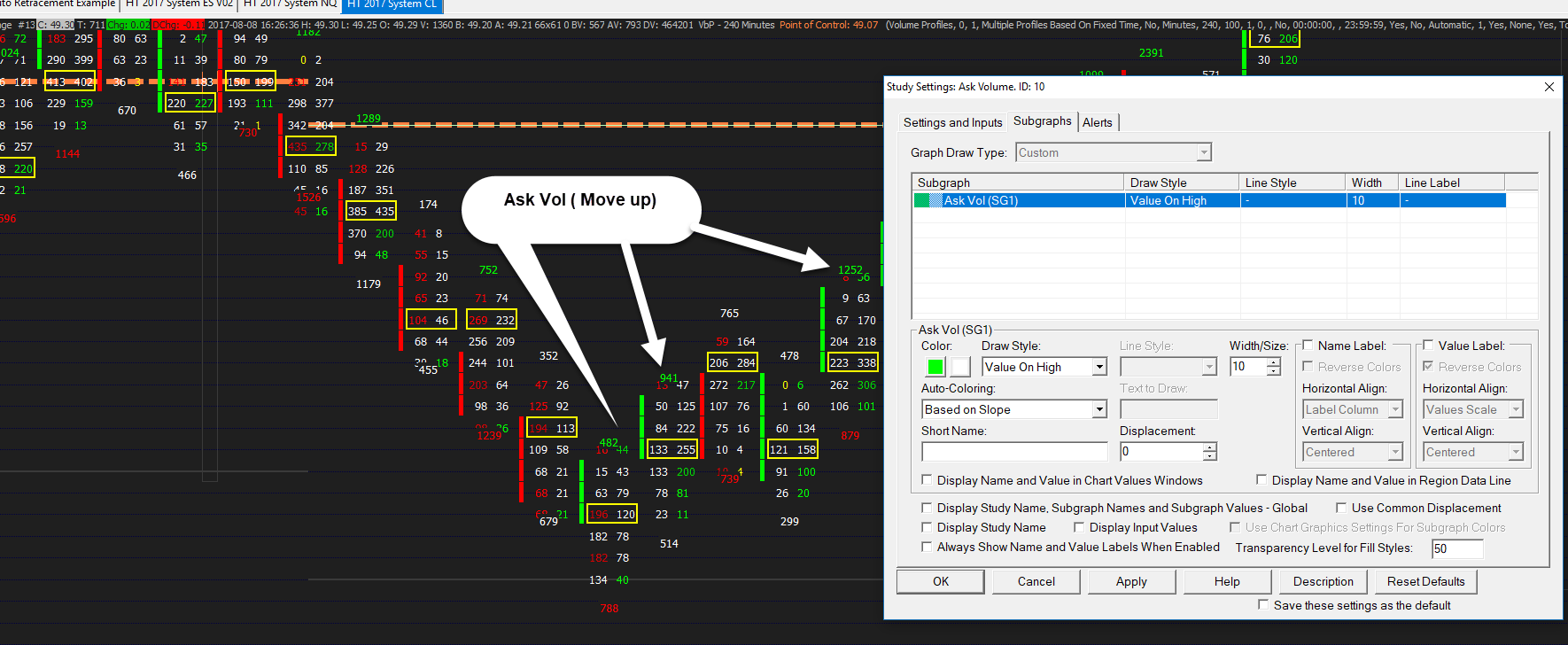 How do I move up Volume Ask over BID/ASK data ?