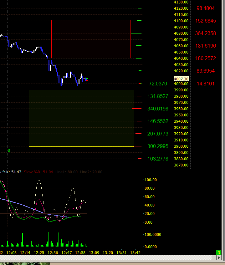 User23559: By L2 thing on the right you mean the trade DOM? Go to and click on trade>>show market data columns, also trade>>draw DOM graph on chart. By edge I mean an angle, a way of trading that is more successful and less stressful than not. To trade off the data from the order book do this: The usual pivots or bounces are the biggest orders/accumulated order groups in the order book. If not too volatile the market is drawn to them and stops there and pivots. Like support and resistance but often more accurate. Sometimes they change at the last minute but mostly they hold. I use multiple time frames and stochastics to gauge direction and probability. Lots of liquidity and the big orders are plowed right through -- but regular trading they mostly hold. Not enough money to buy them up, so they bounce. Look at the image i just uploaded. The price will usually bounce off the largest order blocks. The multiple time frame stochastics confirm...but there is also the chance it is just a retracement...and the order book numbers will diminish and tell you if it is going to go through...usually. The next bounce will maybe occur at around 4040...but as you said, its all pretty fluid. This only seems to work with bitfinex...not bitstamp or okcoin or other smaller exchanges. 10 mins later: ok the numbers have changed at the border of the yellow block, and price has broken through and bounced off the next big order at 3970 -- look at second image. Will probably go further and the recent downward trend may continue. And will bounce at around 3960. Maybe retracement or maybe gobble up the orders and go through.Just keep track of market intentions and probabilities by watching the order book numbers. You can trade the trend down and the bounces up. BTC usually gives at least 20 pts on a bounce, and no broker to grab most of it makes it easier to profit.And you can be off by 10-20 pts and not have your ass handed to you. As long as you dont bet your whole account on each trade. Last Update, 45 minutes later: The main pivot seems to have been 3950. The next goal is around 4020-40, maybe 4060.see image no.3. Anyway, that's my "edge". trading these somewhat fluid order book blocks with multiple time frame stochastics. But you have to be flexible and not get too glued to a trade. Some will be mediocre. But a few will be phenomenal. And as long as you stay out of the way of the big bastards who like to whipsaw and manipulate then you can make a decent buck every day. Oh, p.s. the volume usually creaps/pops up just before a real pivot happens. Usually. Caused by the gobbling of orders ahead of the pivot, and can be used as a warning sign that it's nearby. Good luck. I hope you find something you can use here. RE:"ultimately the only xchange we really need is a decentralized & completely transparent OTC solution (to replace LB and such) in the spirit of crypto itself being developed vibrantly by a devoted community in the spirit of GNU FOSS.." HEAR HEAR. Hope SC goes for it...and soon. Ultimately they are the ones who could do it right. Date Time Of Last Edit: 2017-08-21 07:09:32