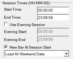 Session times are on the below attached screenshot. The normal contract is updating but the continuous date rule rollover backadjusted contract is not updating.