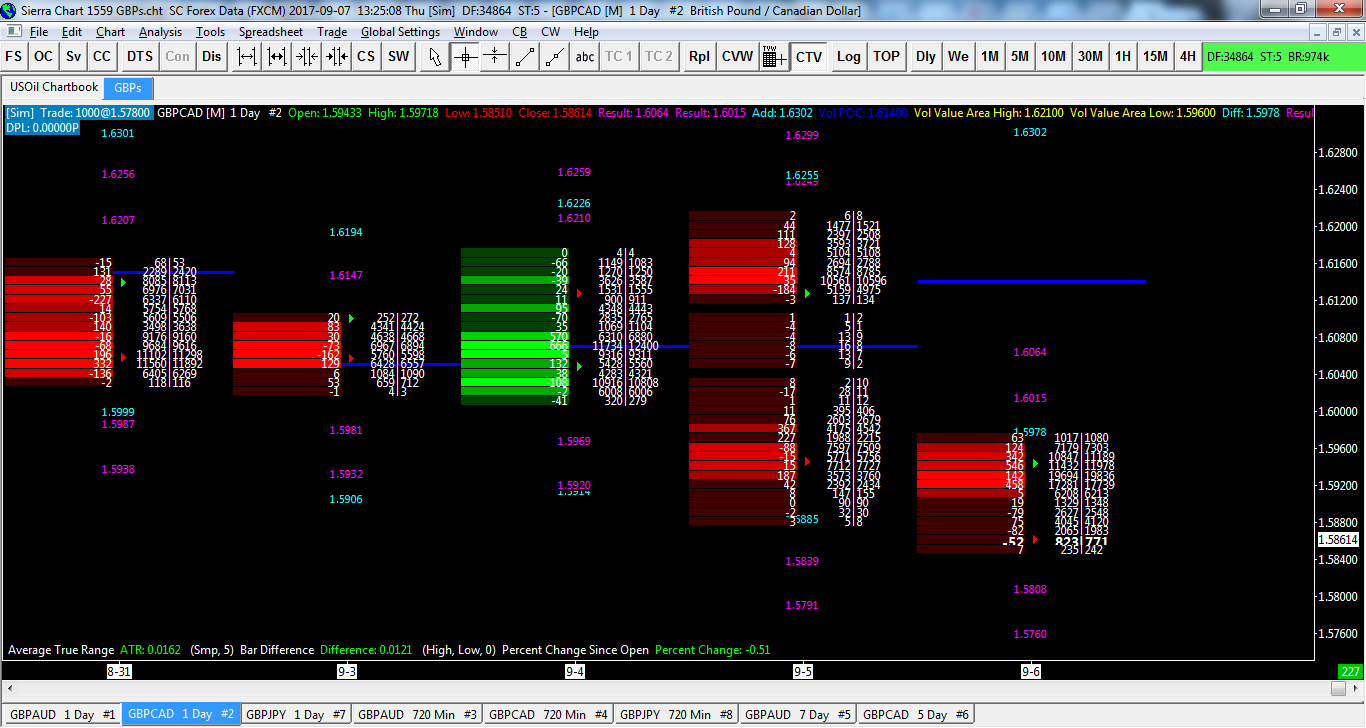 I attached a screenshot of the GBP/AUD chart to show what I am seeing. It seems isolated to this specific pair because I am not experiencing any issues with any other instruments. For example, the GBP/CAD pair is fine & I've attached a screenshot for comparison. It seems to be a data issue but I'm not sure? Here's my setup: Sierra Chart's Package 5 - so Numbers Bars are included and they work on other instruments that I trade Sierra Chart Build Version 1559 SC Forex Data (FXCM) |