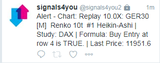 Maybe because of the language and I am sorry. You are absolutely right about your last reply. The signals are from study number 18 and as we can see the name of the study is displayed in the Twitter message. Great! However, I am talking about the very first study, the highlighted one ID:7. I don't want all irrelevant info in the Twitter message like "GER30 [M] Renko 10t #1 Heikin-Ashi". Especially the information about the chart like the Renko information and the Heikin-Ashi. I have changed in this very first study the Short name too in DAX but that has no further effect. I hope it is clear now and that you have a solution for this.