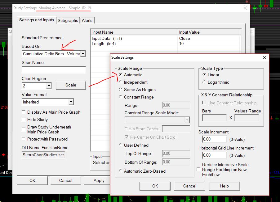 Hi, I am using Cum Delta - Volume as a secondary indicator and I also plot a 10 Mov Avg of this Cum Delta on the secondary indicator. However, I have found that the Cum Delta vs MA relationship will differ depending on the zoom or scroll of the chart. In other words, at exactly the same time, the Cumulative Delta may be above or below the MA dependent on the zoom or scroll of the chart. A lot of my decisions are based on accurate visual display of this relationship. Please see attached 2 examples as well as my settings. I also tried a setting of 'Independent' on my 10 MA Scale Range but the results stay the same. If we look at the price of a chart (tick chart) and its relationship with a MA, the relationship is constant. It does not change based on scroll or zoom. How do I fix this issue? |