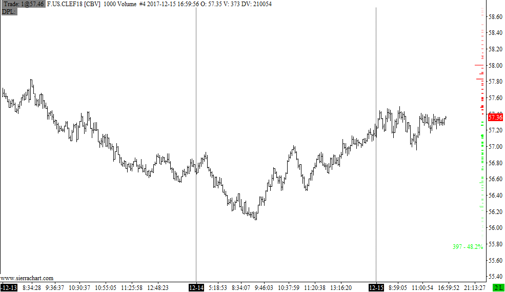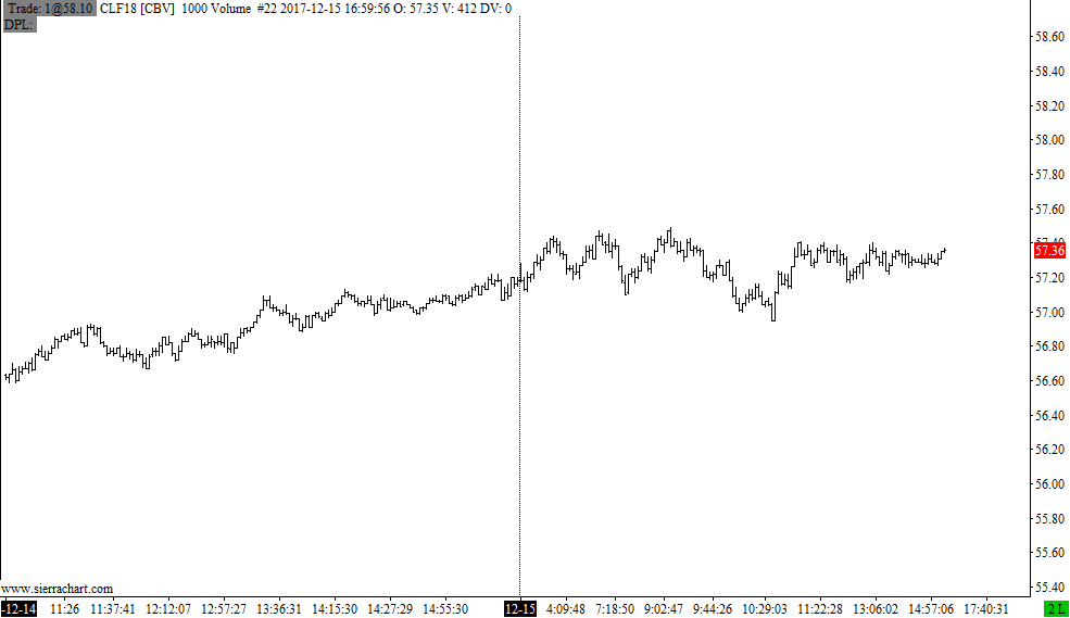 | I do have data missing every time when Rollover happens. Here is the CQG data feed I have for last several days with 1000 Volume Chat http://www.sierrachart.com/image.php?Image=1513543475148.png Here is TD with Sierra data feed on 1000 volume chart http://www.sierrachart.com/image.php?Image=1513543838293.png Both chart same setting with same scale, the difference shows that data is missing somehow, Can you help me to fix this problem? |