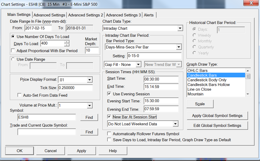 Please look at the two attached picture. I have selected "do not load weekend data" in the chart setting menu but Sunday data is shown in the chart and it messes up with the study I am doing. What do I have to set not to include any weekend data? Regards |