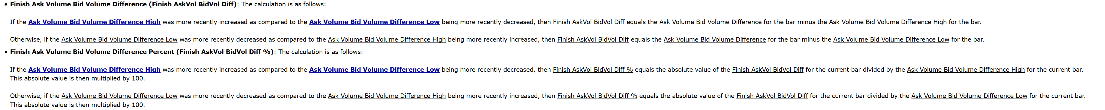 Hello Support, I would like to know if you could explain here or in a video the Number Calculated Value Indicator and especially the Max Delta, the Min Delta, the Finish and the Finish %. I did not find in the help section any content that could to understand how to use these tools in real time while trading. Yes, i went to: https://www.sierrachart.com/index.php?page=doc/NumbersBars.php#s300 and found something about the finish.. Finish Ask Volume Bid Volume Difference Percent (Finish AskVol BidVol Diff %) But i really do not get into it. What is the edge that one can find with that ?? Could you send me a clear definition of these tools please ? Could you hire someone that would realise qualitative videos to show detailled information about specific tools of sierrachart, help user to get into the parameters for each of them, special configurations, set-ups, etc. That would be nice. I do believe that.. you have the money for that. The aim would be, in a marvellous and perfect world, .. to understand what to read first, in which order, which priority to observ on a daily basis to be able to read interesting reversals situations, reading inside the candle. Attached are some screenshots. Could you tell me if the analysis i have written inside are correct ? There are nearly no videos on Youtube and this is really weird especially when it deal to trade futures volumes. Thanks for your support. |