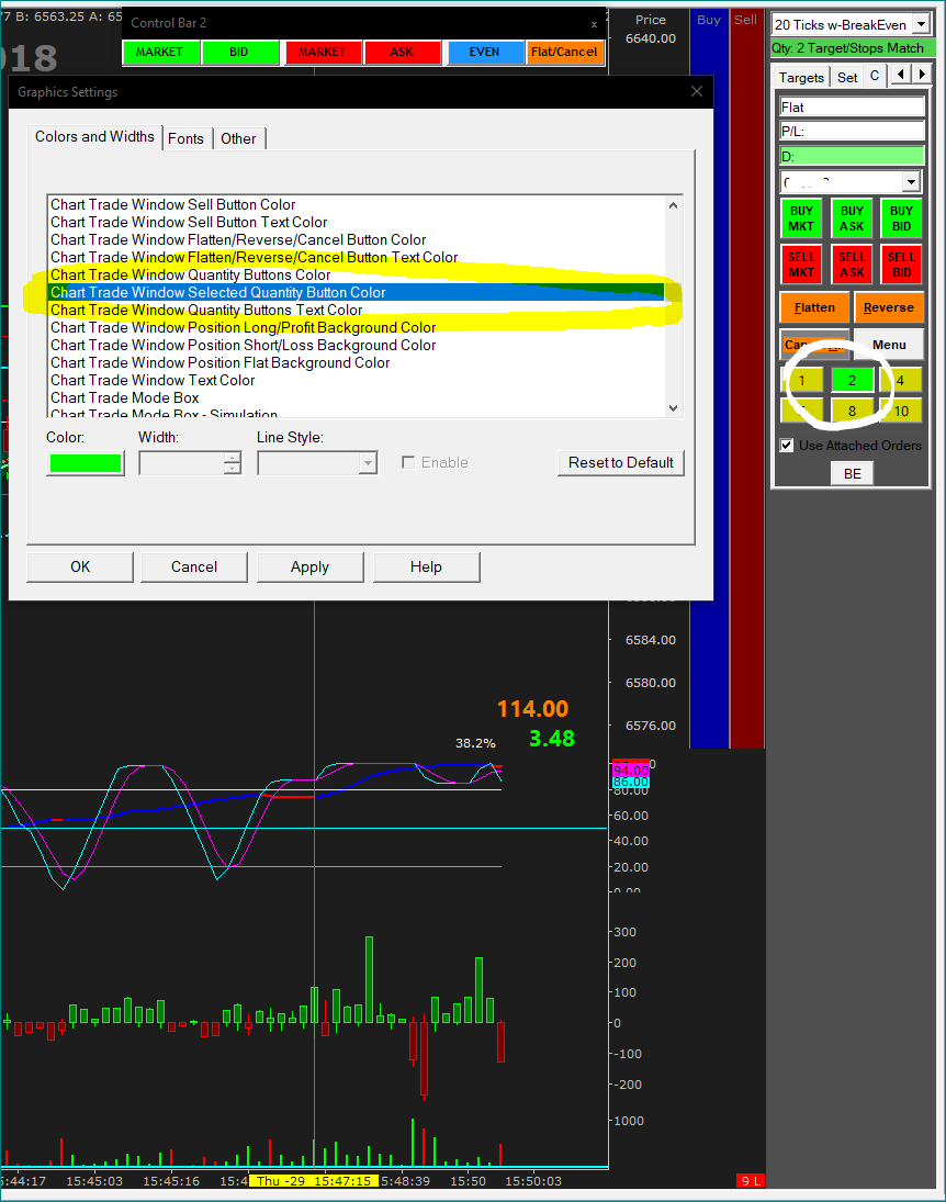 I know you don't want Thank You posts but I wanted to post an example of this change for other users who may not be aware that you've implemented this change. HUGE difference for me, and hopefully this will help other users also. For those unfamiliar, they added Chart Trade Window Selected Quantity Button Color to the Graphic Settings selections! See Attached THANK YOU for your quick response and implementation of this solution SC Engineering Support!! Scott Date Time Of Last Edit: 2018-03-30 19:31:57