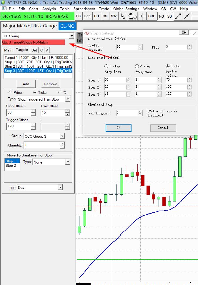 1. when Profit 70tick trailing 30tick 2.when Profit100tick trailing 20tick 3.when Profit120tick trailing 15tick that mean I can tighten my stop when the profit go up. You've give me the link to learn and I can not do this. Pls refer to my pictures. PLEASE note that just one order for the attached orders. |