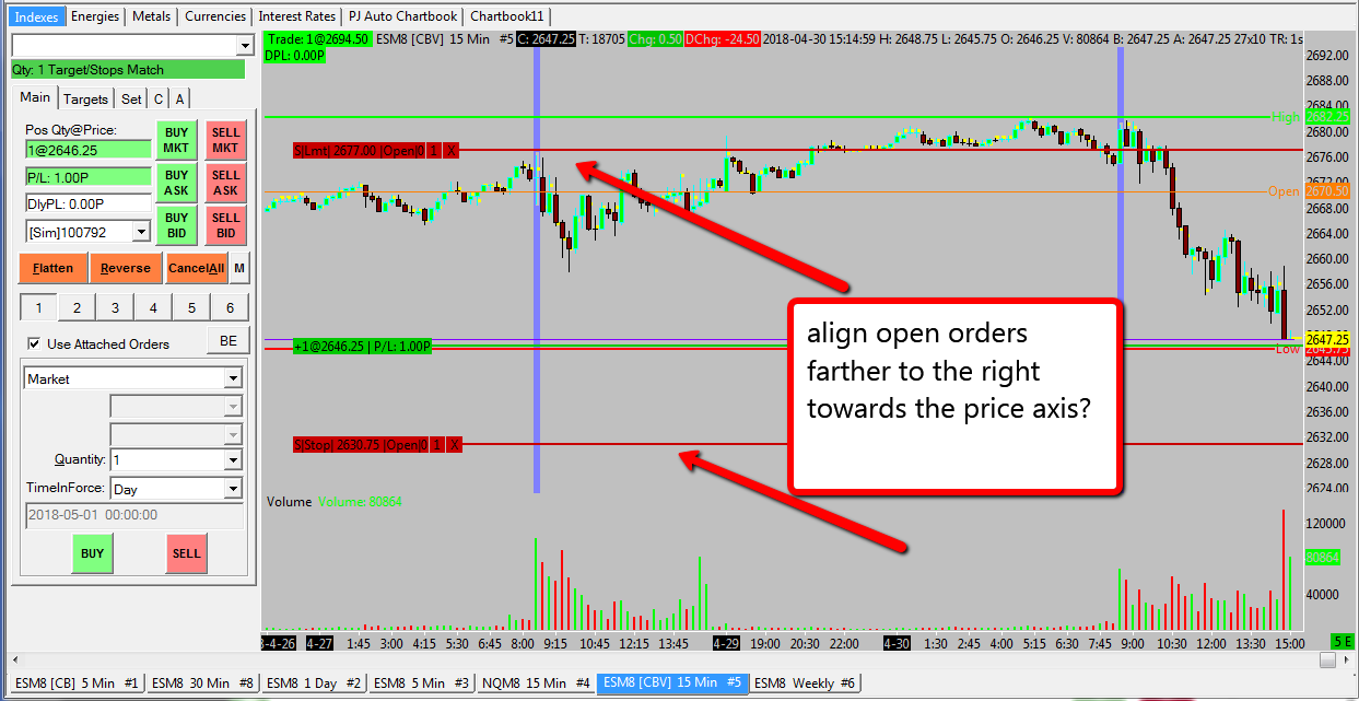 While chart trading is there any way to align open orders and current positions farther to the right closer to the X (price) axis? picture attached |