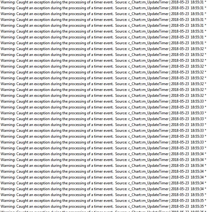 After using Sierra for 2-3 days without restarting it I get blank chart and exceptions start flooding my Message Log - several errors per second (screenshot). It has started doing this several updates ago. |