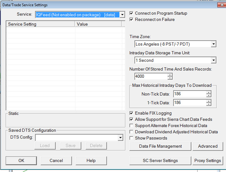 Hello, I am trying to connect sierra charts using IQ feed but it says IQFeed not enabled on this package, see attachment. can you help me wwith you. Thanks |