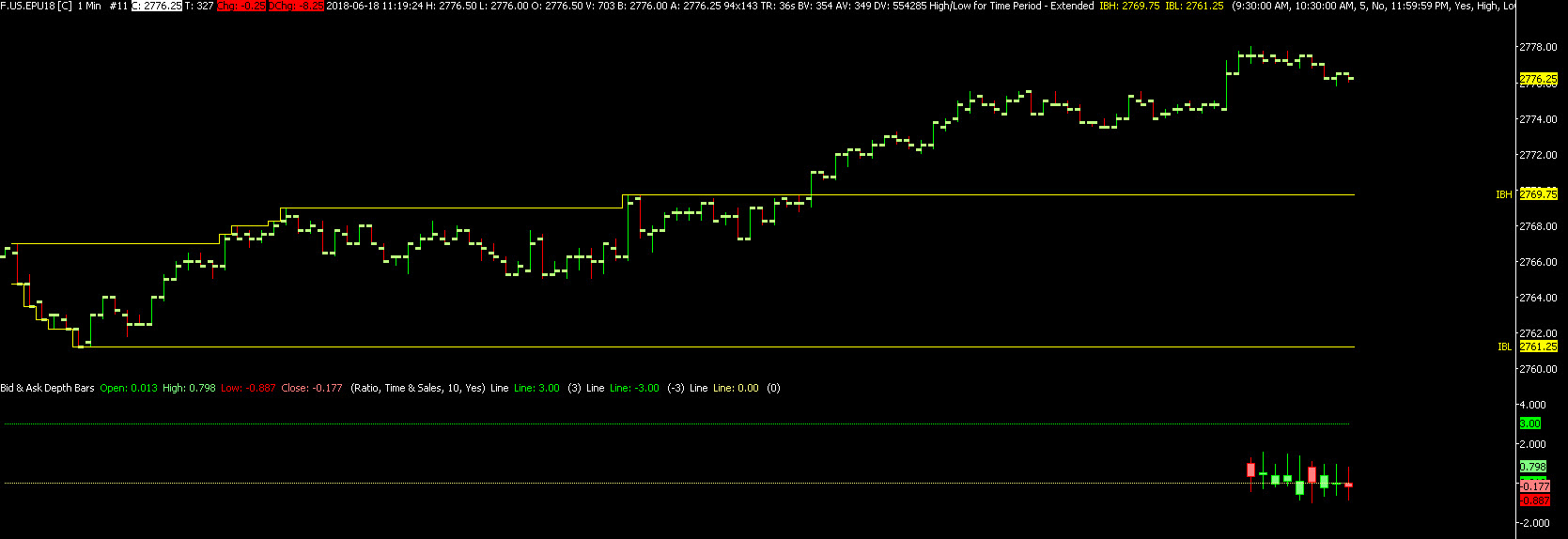 I have a study added to my chart "Bid and Ask Bars" to show a ratio, depth, etc. Any time I add something new to the chart everything gets reset and I loose daily graph. Is there any way to record this data so it doesn't get reset? See region 2 on the screenshot, most of it is blank because I added a horizontal line and clicked Apply. |