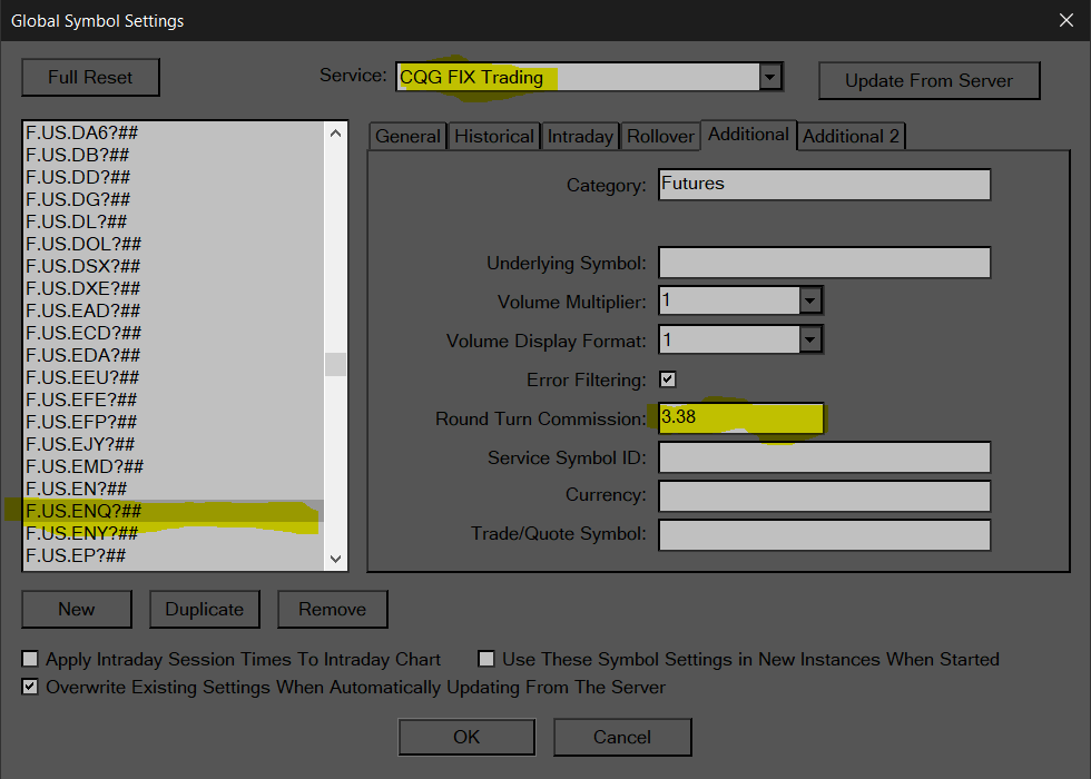 It sounds like you're doing it correctly but compare your setup with my screen shots below. I use CQG Fix with AMP also. The second attachment shows 2 contracts round trip in NQ on CQG. -- Scott |