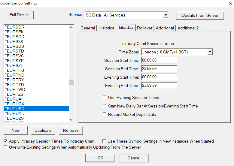 screen shot is attached, this changes the time for eurusd but no other symbols I have tried it with apply intraday session times both ticked and un-ticked