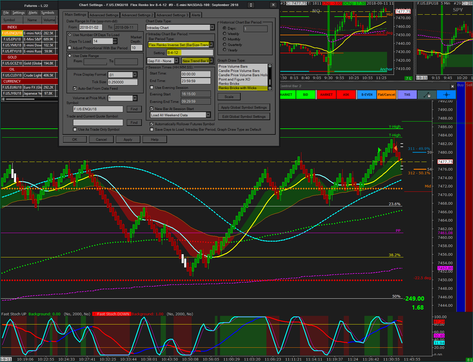 Here is what my Renko 8-4-12 settings look like on the chart. If you want a faster 6 tick bar than you'd use 6-3-9, a slower 12 tick bar, 12-6-18 and so on. Again this is an 8 tick bar with a 4 tick offset and a 16 tick reversal (the 12 + 4 = 16). The other screen shots show the Chart Setting bar period and style settings to achieve what I've found to be closest to the NT Better Renko or Mean Renko settings. Enter your bar settings and play with it but this should be MUCH closer to your first chart than the SC chart you posted. If you have any questions feel free to shoot me a DM also. -- Scott Date Time Of Last Edit: 2018-09-11 15:56:03