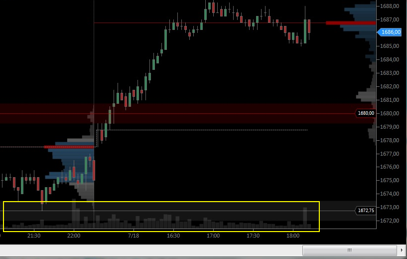 Hello, at first - I commend you for a very successfully programed Sierra Chart! I was a user of Ninja Trader and differences in favor of the Sierra are large. I have a proposal for a new indicator - volume opacity in price chart. If you can program simple indicator that plots the bar volume along the bottom of the chart instead of in a separate panel. It saves a lot of horizontal space by not adding another panel to the chart. For better use would be great, if the setting include adjustable maximum volume bar height (percent of chart window or pixel) and opacity. I attach a screenshot, as I was accustomed to in the past. Thank you very much and have a great day. Jan |