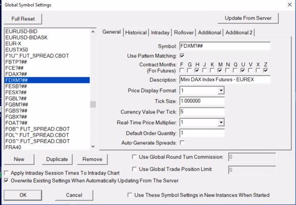 yes its there. Just tested on a different PC with 1842. Same error message even after Global Symbol Settings -> Update from Server. Here the message log from the 2nd machine: Reading Internal Order ID file. | 2018-11-21 18:48:50 Reading Trade Orders file. | 2018-11-21 18:48:51 Reading Trade Positions file. | 2018-11-21 18:48:51 Account Balance file. | 2018-11-21 18:48:51 Listening on UDP port 22903. | 2018-11-21 18:48:51 Software version: 1842 32-bit | 2018-11-21 18:48:51 Usage end date: 2019-11-15 | 2018-11-21 18:48:51 Enabled for: Advanced Features. | 2018-11-21 18:48:51 Enabled for: Advanced Features 2. | 2018-11-21 18:48:51 Enabled for: Sierra Chart Historical Data Service. | 2018-11-21 18:48:51 Allow Support for Sierra Chart Data Feeds is enabled. | 2018-11-21 18:48:51 Current selected Data/Trading service: GAIN Capital/OEC | 2018-11-21 18:48:51 Chart Update Interval: 500 | 2018-11-21 18:48:51 Time Zone: +01:00:00 (CET+01CEST+01,M3.5.0/02:00,M10.5.0/03:00) | 2018-11-21 18:48:51 2018-11-21 18:48:51 Local computer time | 2018-11-21 18:48:51 2018-11-21 17:48:51 Local computer time in UTC | 2018-11-21 18:48:51 2018-11-21 18:48:51 Local computer time in SC Time Zone | 2018-11-21 18:48:51 2018-11-21 17:48:50 Server time in UTC | 2018-11-21 18:48:51 Local computer UTC time and Server UTC time difference: 1 seconds. | 2018-11-21 18:48:51 Program path: C:\SC\SC-S5\ | 2018-11-21 18:48:51 Data Files path: C:\SC\SC-S5\Data\ | 2018-11-21 18:48:51 OS Version Number: 10.0 | 2018-11-21 18:48:51 Locale Setting: C | 2018-11-21 18:48:51 DLLs: Convergent.dll, Convergent_64.dll, SCPrivate.dll, Theoretical Average.dll, Theoretical Average_64.dll, UserContributedStudies.dll, UserContributedStudies_64.dll | 2018-11-21 18:48:51 Created the DTC Protocol server. | 2018-11-21 18:48:51 DTC Protocol Server listening on port 11099. | 2018-11-21 18:48:51 Created the DTC Protocol historical data server. | 2018-11-21 18:48:51 HD Server Manager | Listening on port 11098 | 2018-11-21 18:48:51 Checking for new symbol settings for service code oec | 2018-11-21 18:48:51 HTTPS www.sierrachart.com:443 (4) | Creating socket. Using TLS 1.2. | 2018-11-21 18:48:51 HTTPS www.sierrachart.com:443 (4) | Connecting to IP: 204.15.192.108. | 2018-11-21 18:48:51 Symbol settings are up-to-date for oec | 2018-11-21 18:48:52 Received 5 login tokens. | 2018-11-21 18:48:52 HTTPS www.sierrachart.com:443 (5) | Creating socket. Using TLS 1.2. | 2018-11-21 18:48:53 HTTPS www.sierrachart.com:443 (5) | Connecting to IP: 204.15.192.108. | 2018-11-21 18:48:53 HTTPS login.sierrachart.com:443 (1) | Socket gracefully closed by remote side. | 2018-11-21 18:48:54 HTTPS login.sierrachart.com:443 (1) | Signaling to core to close socket | 2018-11-21 18:48:54 HTTPS login.sierrachart.com:443 (1) | Received socket Close event. | 2018-11-21 18:48:54 HTTPS login.sierrachart.com:443 (1) | Graceful close received or receive error. Shutdown complete. Closing socket now. | 2018-11-21 18:48:54 HTTPS login.sierrachart.com:443 (1) | Closed. | 2018-11-21 18:48:54 HTTPS www.sierrachart.com:443 (1) | Creating socket. Using TLS 1.2. | 2018-11-21 18:48:54 HTTPS www.sierrachart.com:443 (1) | Connecting to IP: 204.15.192.108. | 2018-11-21 18:48:54 Received Date-time from server. Delay adjusted UTC Date-time: 2018-11-21 17:48:56.125. Round-trip delay: 00:00:00.236 | 2018-11-21 18:48:55 Computer time to server time difference: -00:00:01.167 | 2018-11-21 18:48:55 Error setting System Date-Time. Windows error code 1314: Dem Client fehlt ein erforderliches Recht. | 2018-11-21 18:48:55 GAIN Capital/OEC | Connecting to trading server sim.gainfutures.com. Port: 9300. | 2018-11-21 18:48:57 GAIN Capital FIX Trading socket (3) | Creating socket. | 2018-11-21 18:48:57 GAIN Capital FIX Trading socket (3) | Connecting to IP: 64.94.37.238. | 2018-11-21 18:48:57 HTTPS www.sierrachart.com:443 (4) | Socket gracefully closed by remote side. | 2018-11-21 18:48:57 HTTPS www.sierrachart.com:443 (4) | Received socket Close event. | 2018-11-21 18:48:57 HTTPS www.sierrachart.com:443 (4) | Signaling to core to close socket | 2018-11-21 18:48:57 HTTPS www.sierrachart.com:443 (4) | Graceful close received or receive error. Shutdown complete. Closing socket now. | 2018-11-21 18:48:57 HTTPS www.sierrachart.com:443 (4) | Closed. | 2018-11-21 18:48:57 HTTPS www.sierrachart.com:443 (2) | Socket gracefully closed by remote side. | 2018-11-21 18:48:57 HTTPS www.sierrachart.com:443 (2) | Received socket Close event. | 2018-11-21 18:48:57 HTTPS www.sierrachart.com:443 (2) | Signaling to core to close socket | 2018-11-21 18:48:57 HTTPS www.sierrachart.com:443 (2) | Graceful close received or receive error. Shutdown complete. Closing socket now. | 2018-11-21 18:48:57 HTTPS www.sierrachart.com:443 (2) | Closed. | 2018-11-21 18:48:57 GAIN Capital FIX Trading: Sending the Logon message. | 2018-11-21 18:48:57 GAIN Capital FIX Trading | Connected to trading server. | 2018-11-21 18:48:57 GAIN Capital/OEC | Connecting to market data server sim.gainfutures.com:9301. | 2018-11-21 18:48:57 GAIN Capital FAST Data socket (2) | Creating socket. | 2018-11-21 18:48:57 GAIN Capital FAST Data socket (2) | Connecting to IP: 64.94.37.238. | 2018-11-21 18:48:57 GAIN Capital FAST Data: Sent the Hello message. | 2018-11-21 18:48:57 GAIN Capital FAST Data: Sent the Logon message. | 2018-11-21 18:48:57 GAIN Capital/OEC | Connected to data and trading server. | 2018-11-21 18:48:57 HTTPS www.sierrachart.com:443 (5) | Socket gracefully closed by remote side. | 2018-11-21 18:48:59 HTTPS www.sierrachart.com:443 (5) | Received socket Close event. | 2018-11-21 18:48:59 HTTPS www.sierrachart.com:443 (5) | Signaling to core to close socket | 2018-11-21 18:48:59 HTTPS www.sierrachart.com:443 (5) | Graceful close received or receive error. Shutdown complete. Closing socket now. | 2018-11-21 18:48:59 HTTPS www.sierrachart.com:443 (5) | Closed. | 2018-11-21 18:48:59 HTTPS www.sierrachart.com:443 (1) | Socket gracefully closed by remote side. | 2018