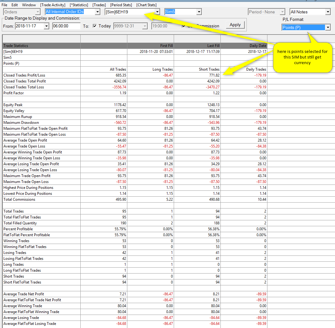 Thanks for the reply; I have the correct tick/currency values set in both 'chart settings' & Global symbol settings as 6.25 (6E futures) & the Activity Log set to look at SIM back tests and still cannot get ticks (T) no matter what; see attached pictures;