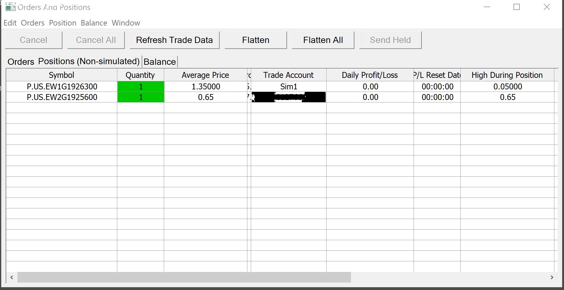 Today observed the Orders and Positions window displaying an older Sim1 account position in the sub-instance session though not the CQG session. Unsure how to clear the position or even though only non-simulated positions are to display why a Sim position shows up. Thank you.