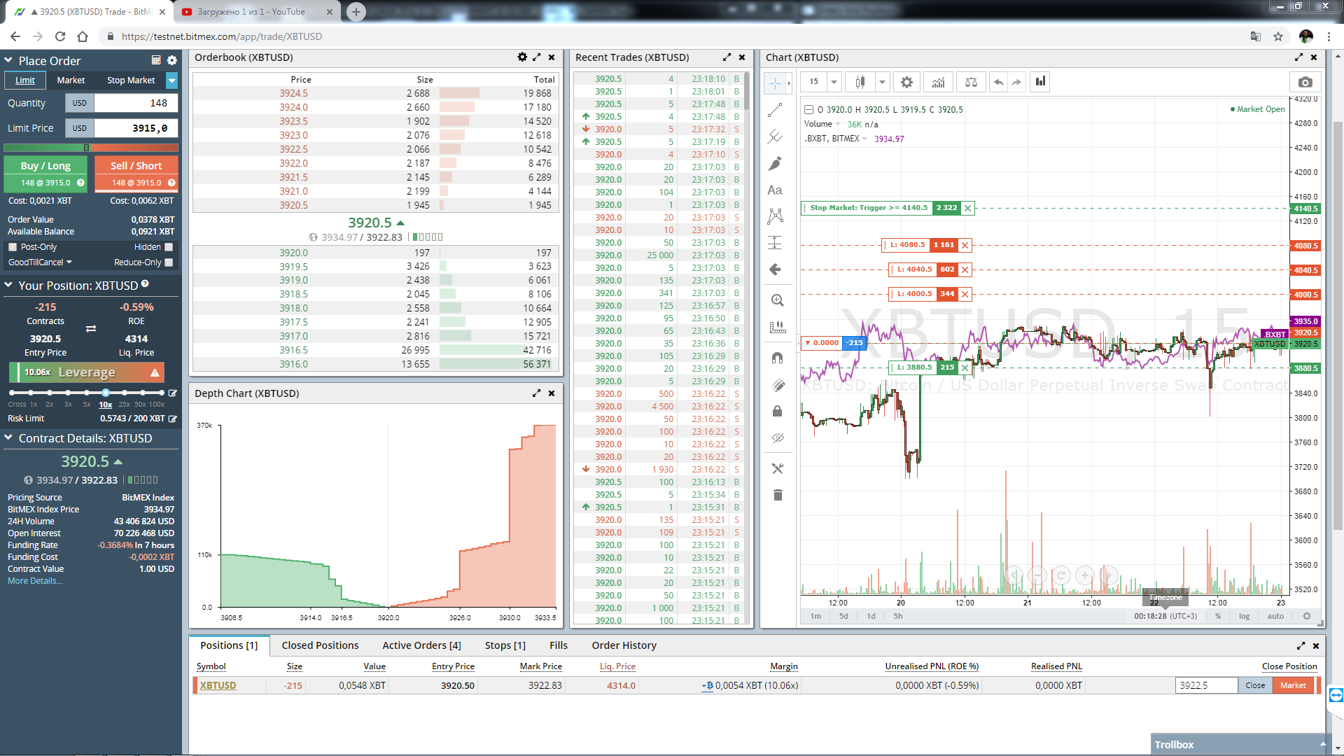 As you may see on attached screenshot, there is short position XBTUSD-BMEXT 215 contracts. this position was really opened 2019-02-22 14:19:33 (105 + 20 + 10 + 80 contracts). It was filled Sell Limit order on level 3920,5. After internet was reconnected - I found 5 ghost short trades with timestamp 2019-02-22 15:00:00.077 with same volume = 215 contracts for every of 5 trades with price 3928,5 as you may see on chart and in Trade Activity Log. But Orders and Positions show only 1 trade -215 contracts The rest 5 trades was unreal, fake trade. As you may see on second screenshot from BitMEX - only 215 contracts short position was really opened. The question is - why fake trade are drawn on my SC chart and are present in Trade Activity Log and how I can avoid this in future? Thanks, Alex. |