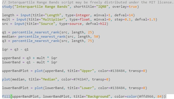 I'm trying to replicate this IRQ Bands study (see attached for details) but can't find any comparable function to Pine Script's simple "percentile_nearest_rank" function. Any ideas as to a SC ACSIL function or C++ stats library that has something similar? Or will this be more complicated with SC's ACSIL? I did look at the code for SC's Stochastic Percentile study, but it isn't want I need. It only provides the percentile rank of the last value, not the price value that falls into specific percentile rank. This IRQ Bands study is somewhat comparable to STD bands in terms of how to trade them. |