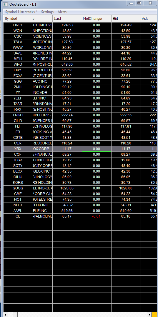 I'm using IB and the sierra RT & historical feeds. Last couple of days Ive noticed that the net change field doesn't update. At most, only one or two tickers will show a change. The picture was captured @ 10:45 tuesday. |