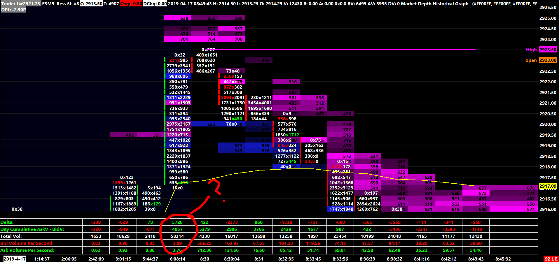 Is there a way to have an alert when the Total Volume for the current bar surpasses a % of the Total Volume of the previous bar? In the image attached I would have that 58314 alert and change background color or char color or anything if possible. Thank you in advance.