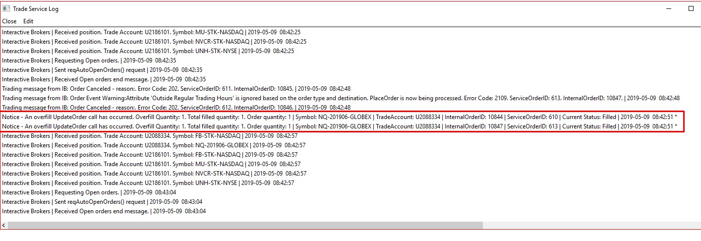 I am getting an overfill message when I closed my NQ position - see screenshot. Can you explain what is the message suppose to mean?
