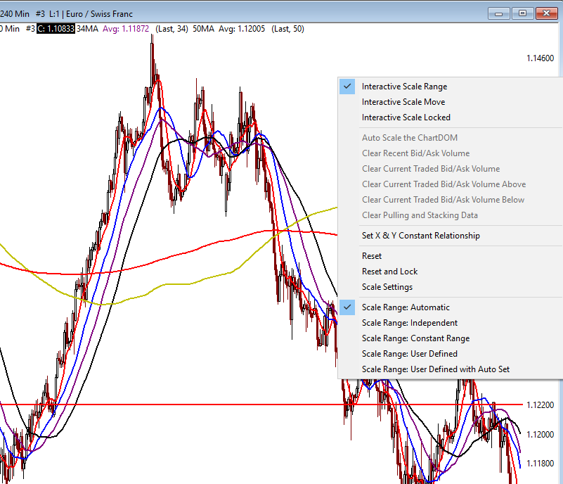 Hi, Im not sure why but my chart will not rescale using the Mouse? It is just a standard price chart with some MA's on. I have 'Interactive Scale Range' and 'Scale Range: Automatic' selected which is the same as other charts in a differnt Chartbook and I am able to scale the axis with my Mouse but just not in this workbook. Any ideas as to why this maybe please so that I can look? EDIT: All 3 Charts within the Same Chartbook are acting the same Date Time Of Last Edit: 2019-06-20 15:18:20