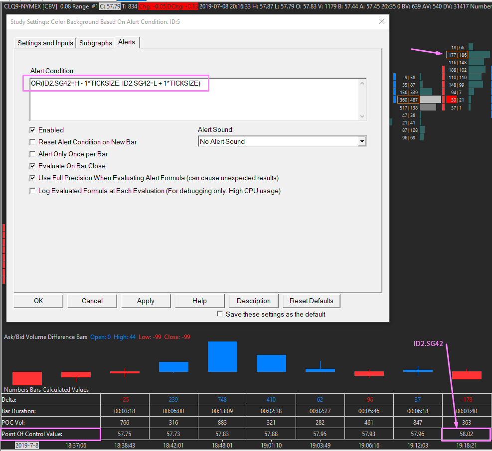 Hello, I am trying to display a very simple background condition. The condition is true, when the VPOC is on the second place compared to the high or low. I used the formula OR(ID2.SG42=H - 1*TICKSIZE, ID2.SG42=L + 1*TICKSIZE)but it doesn´t seem to work ?! Thank you for your help ! Best regards Hauke |