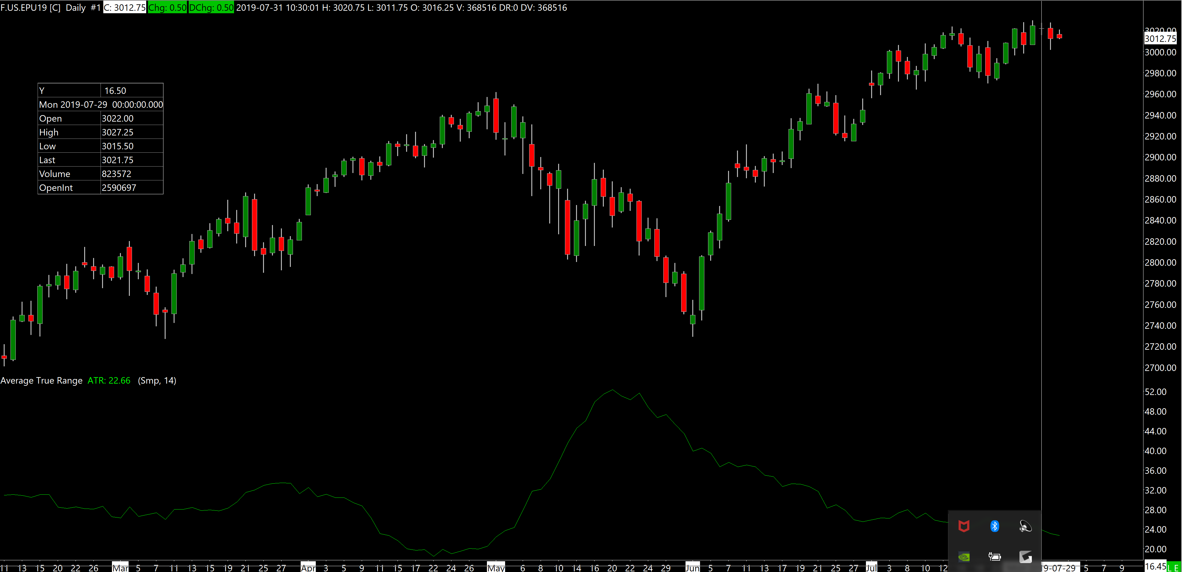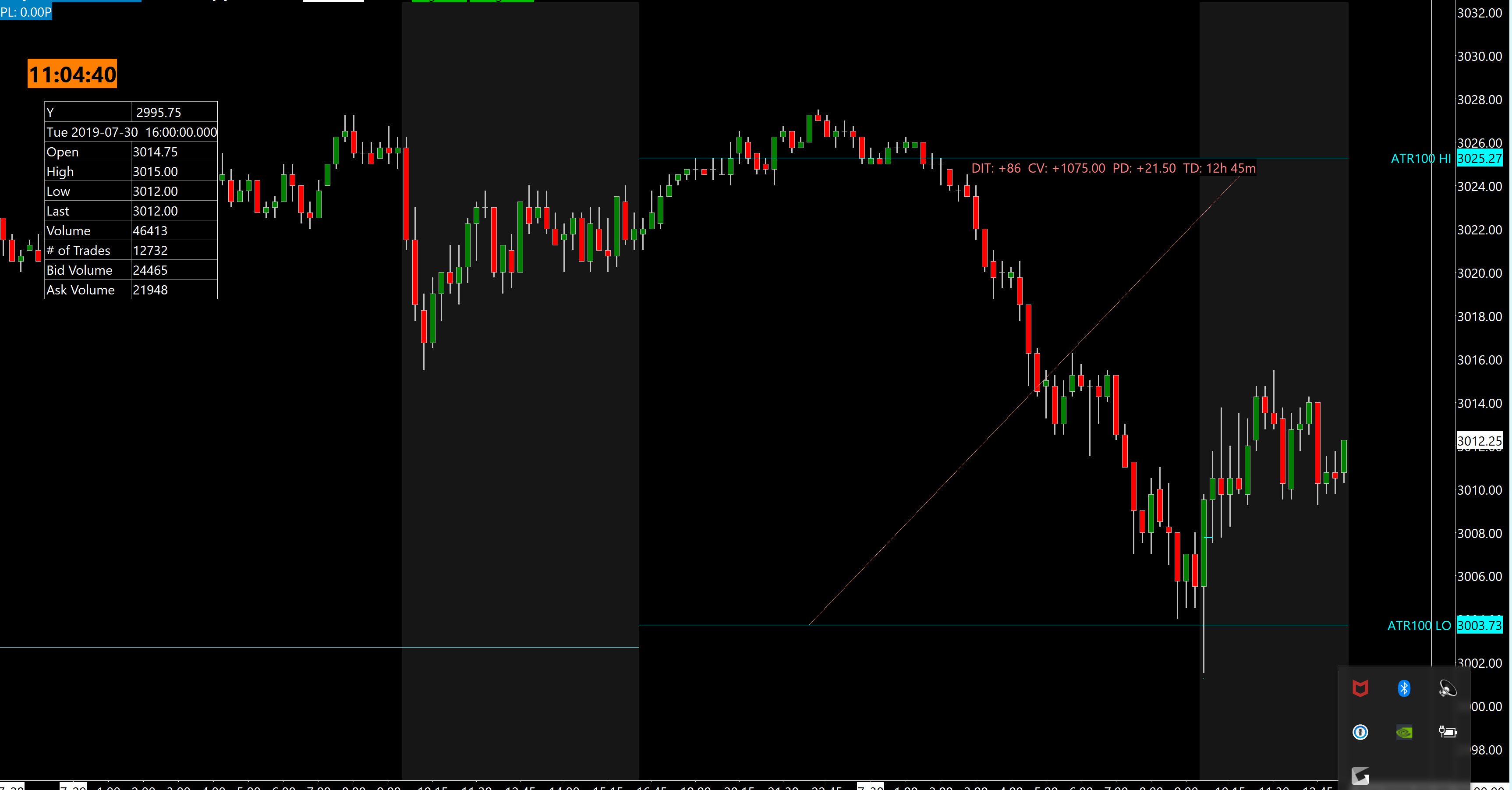 Hi. As per the instructions on this indicator, I have set up different Daily Range Bands for various percentage levels on an intraday chart - which is referenced to a historical daily chart with ATR (simp. 14). I have attached various screen shots of charts The problem is - on checking the 5 min chart the 100% band high and low does not match the ATR day number. For example the intraday 1 ATR for Tues 7/30 measures the difference between ATR high and low at 21.5 points. The DRB is set to look back one day, so the daily ATR (14) for that day is Monday is 21.5 points, but the historical chart shows an ATR of 23.77. Furthermore, there is no ATR match for any ATR on any day. I have carefully set up the intraday chart as instructed from the website (image also attached), but with no success for a match - they're close, but they should be an exact match. Any assistance to solving this would be greatly appreciated. I have been through the support forums and found other users having the same problem, but there are many inconsistent solutions offered in each thread either from support, or from other users. I am not sure, if I have got this wrong somewhere, but have not come up with a solution despite a lot of research on the topic. Thanks again. The Daily Range Bar study configuration for the 5 min chart is: Range Study Reference Subgraph: #1.ID1.SG1 Gap Adjust With Yesterdays Close: Yes Number of Days to Display (0 = All): 0 Band Multiplier: 1 Use High/Low from Historical Daily Chart: YES Daily Range Displacement: 1 Stop Updating High/Low When Projected Range Met: NO http://www.sierrachart.com/image.php?Image=1564587206599.png http://www.sierrachart.com/image.php?Image=1564587252607.png |