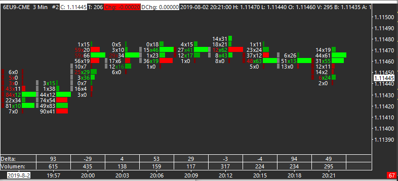 Hello, I went to the Number Bars, Column 1 set the Bid X Ask so that I see the inballance To do this, I set Column 1 Range 0 Up / Down Color to white and Column 1 Percent Compare Thresholds to 2.5, 3, 4. Under Column 2, I've created a volume profile, Based on AskVol / BidVol Percentage. Here I have not colored the colors of the Range 0 Up / Down Color in white, also I have other values under Percent Compare Thresholds (0.25, 0.5, 0.75) So far, I have exactly what I want, to which I would like to have both in a column. Is it possible to overlap these? Kind regards |