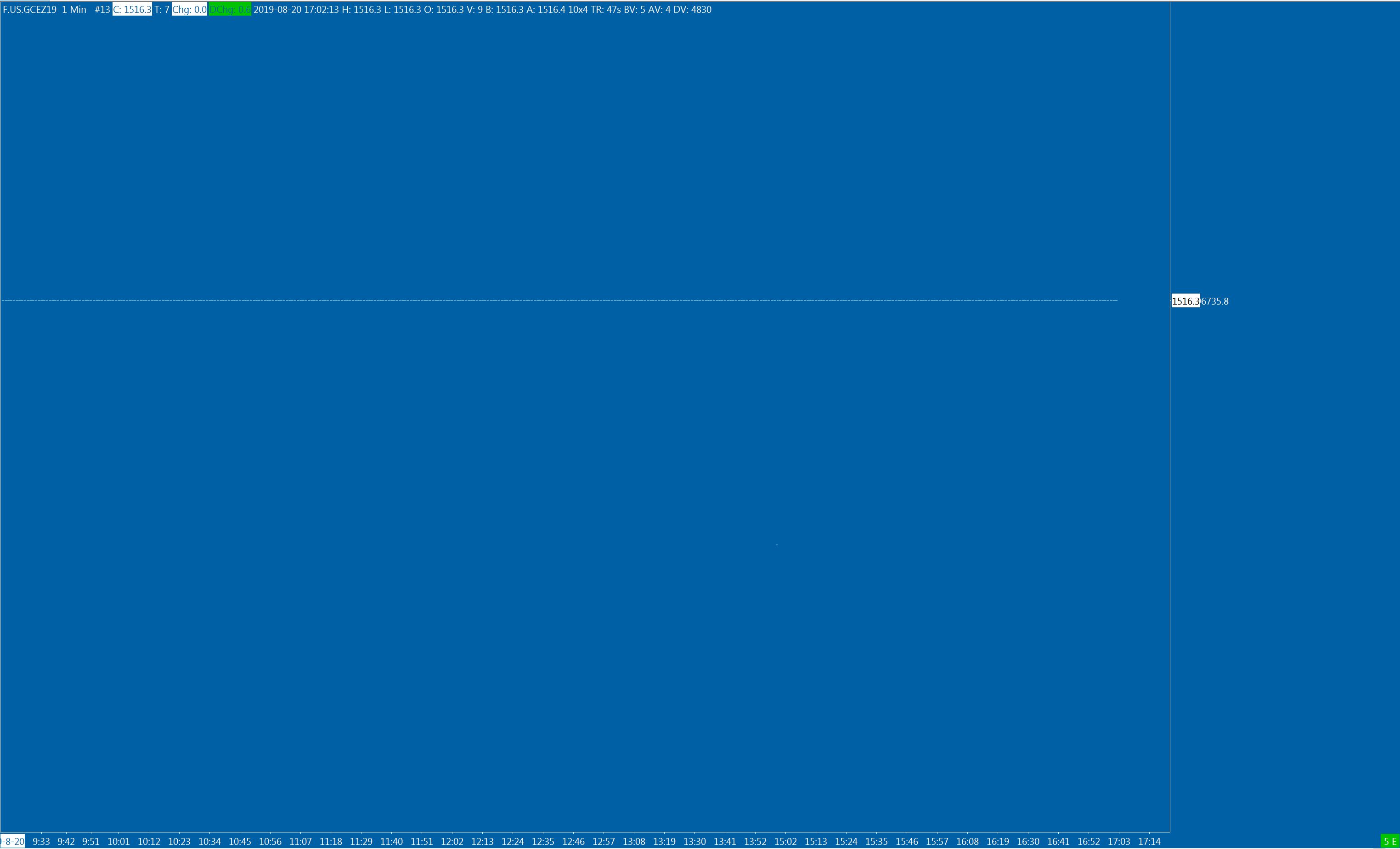 I have a demo account with CQG in order to validate that I can use them as a replacement for Gain. I'm trying to load an intraday (1min) chart of gold, CQG symbol: F.US.GCEZ19. It shows a flat line for a long period of time today. The chart's session start/end times are set to 00:00:00 and 23:59:59. See first screenshot. If I change the chart's session start/end times to 15:00:00 and 14:00:00 (which is correct for my time zone), the chart looks normal. Second screenshot. With Gain data, I don't have to make this adjustment. If I use CQG, will I have to manually set the session start/end times for each and every symbol and chart that I want to look at? What's causing this? Thank you. |