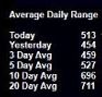 hi , Is there an indicator available to display a box in a chart with the following information of the instrument: Average Daily range (in Ticks) for: Today Yesterday 3 day Avg 5 Day Avg 10 Day Avg 20 Day Avg thanks David |