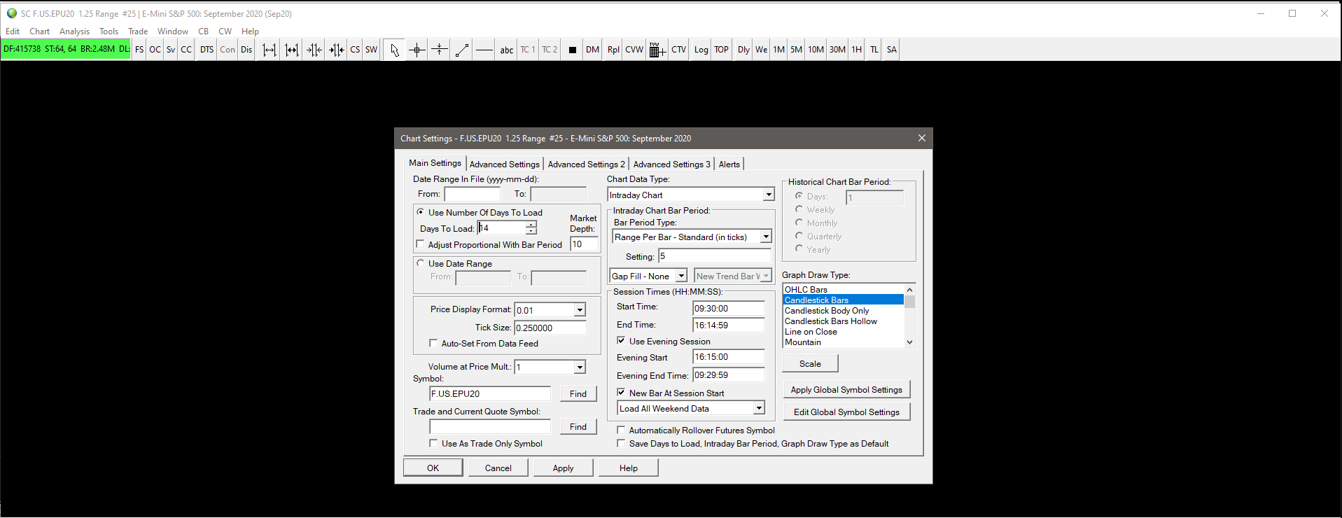 Hi I've duplicated a chart and changed my instrument to ES and cannot get the historical data to load. Chart is blank. See pic attached. Please advise. Thank you.