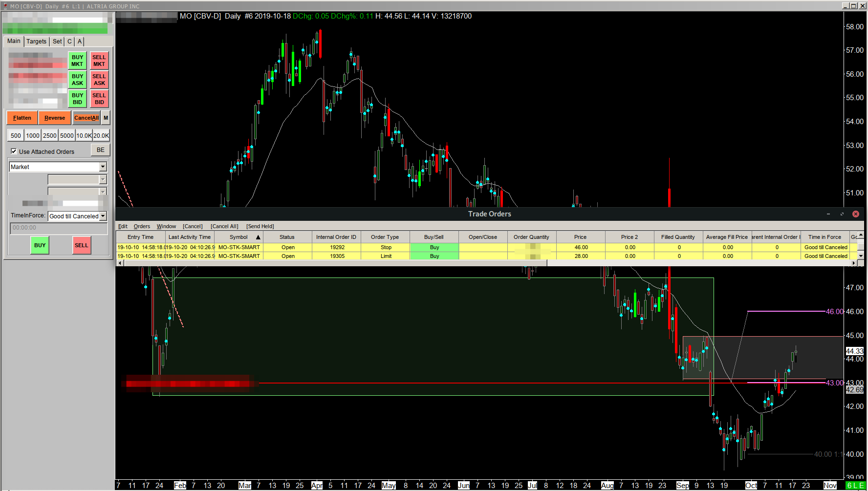 Hello SC, there is an annoying issue with IB and Orders once a shut down Sierra and Reopen it.. As you can see in the attached Screenshot, the attached OCO orders are gone and not visible on the chart anymore. you see that "Chart Trade Mode" is enabled as it shows the position and you see that there are orders as they are visible in the "Trade Orders" window. however, for some mysterious reason they are gone from the chart and wont show up anymore.. This makes it VERY annoying to handle scale outs or order modifications. please advise. thanks, Andreas Date Time Of Last Edit: 2019-10-20 11:20:38