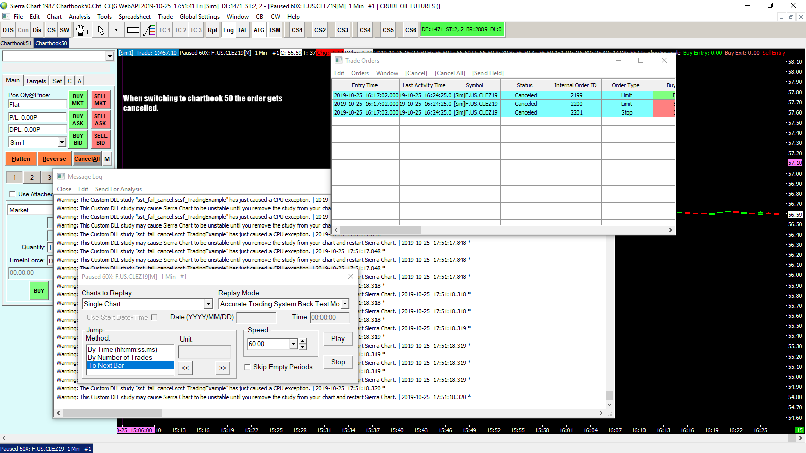 Post From: sc.CancelOrder is causing CPU exception when a user is looking at another chartbook