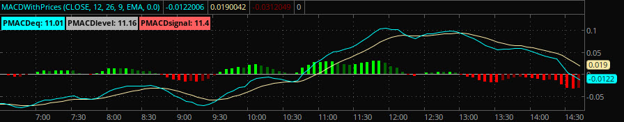 Hello I am trying to get my MACD to show 4 colors for it's slope. See the attached image to give you a better idea. When the slope is... 1. Positive and rising it is light green. 2. Positive and falling it is dark green. 3. Negative and falling it is light red. 4. Negative and rising it is dark red. Is it possible to do this in Sierra. I know study slopes only allow for 2 colors so maybe a work around is to have 2 MACD studies. One only shows me the positive and I color the slope based on +/- and the negative bars are removed or possibly covered with black bars with the Color Background Based on Slope. Then put the same MACD study on the same region and do the same, but in reverse. Is that possible? Regards! |