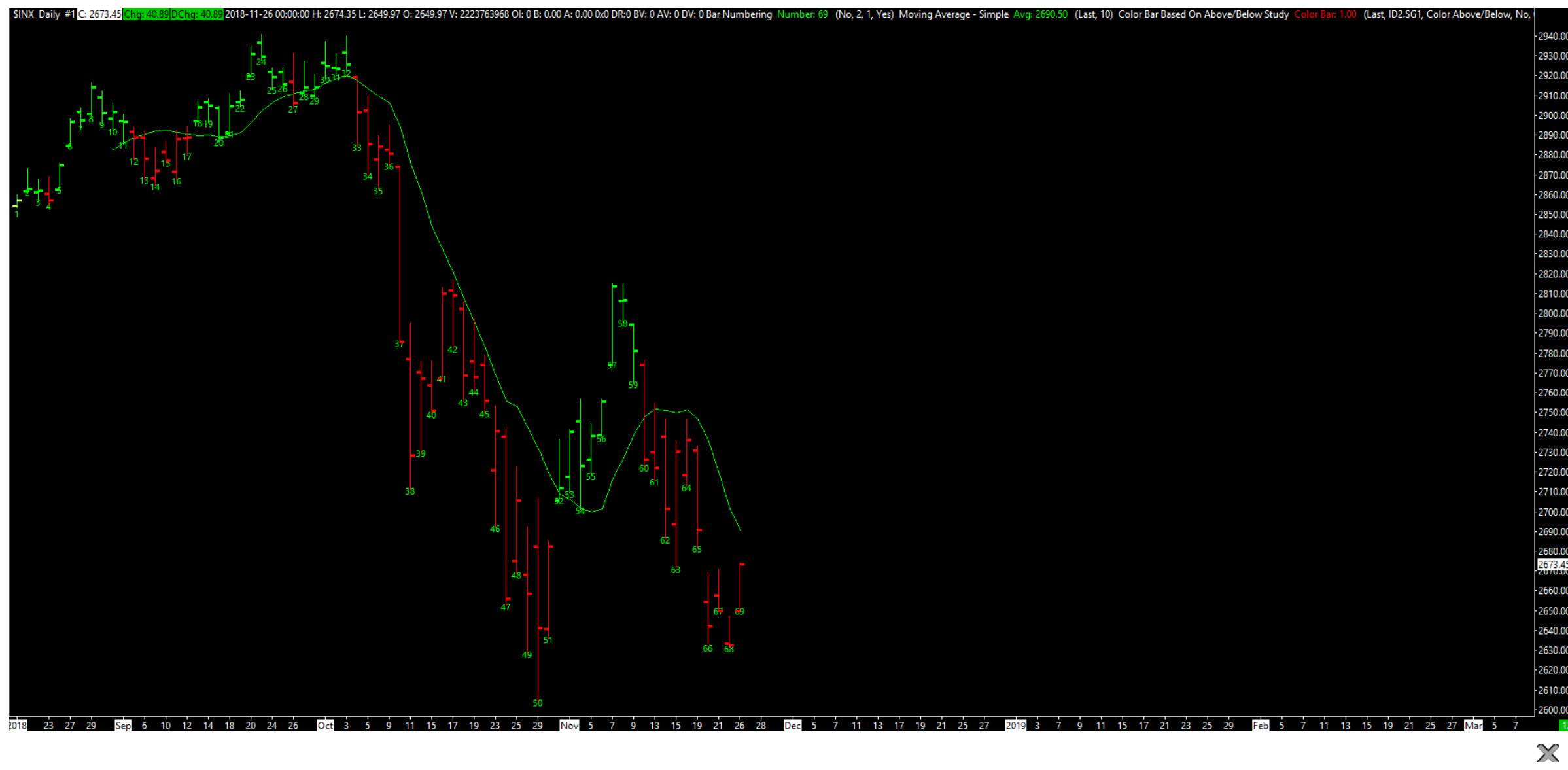 Post From: Paintbar - all candles green above specified moving average & red below the moving average