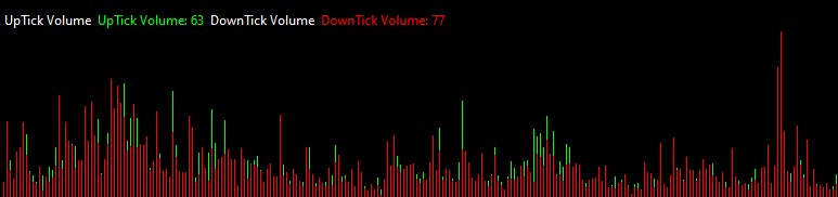 Hello, I wanted to have a study where the uptick and downtick volume could be plotted out by bar on one single study as pictured in #1.jpg. This would be where the downtick volume is always plotted underneath the uptick volume on the same bar. Currently I have managed to merge two seperate studies of uptick and downtick volume in the same subgraph. This is okay but since the volumes overlap it does not show the lesser of the two volumes plotted on the same bar as it is over taken by the larger volume. ie #2.jpg thank you! |