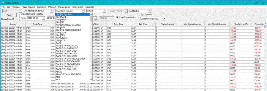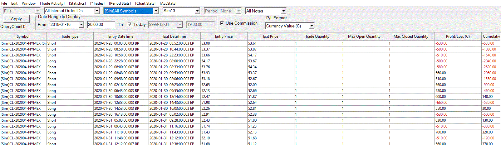 No, the problem is not because I did not press APPLY. The problem is in the backtesting of this Sierra Chart version 2048 64bit. As mentioned previously, I can see the backtested results in [Trades] but not in [SIM] Symbols. Please attached snapshots. Thanks. |