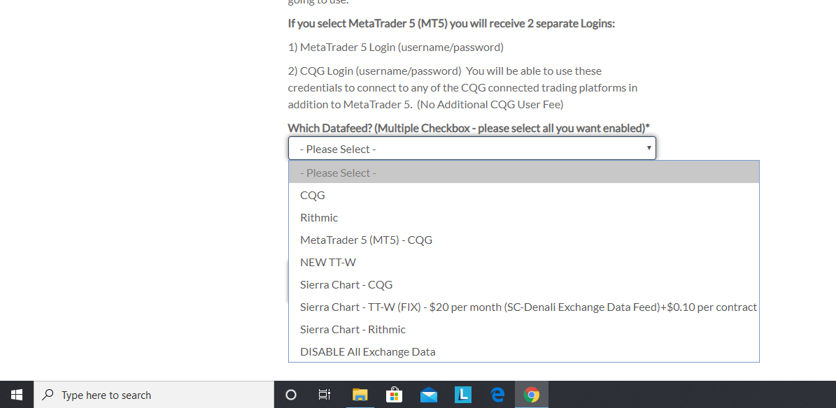 So I've funded my AMP futures account as detailed in the "Easy Solution to CME Funded Trading Account Requirement" page but now in order to complete the setup, AMP is asking me to pick a data feed for the account am I supposed to choose "disable all exchange data" and pay for data through sierra? they have sierra chart data feeds available through their site.. they even have Rithmic, which is not listed as a supported service on sierra's website. I've heard that Rithmic is the best quality data, so maybe I should choose that and pay for it through AMP? |