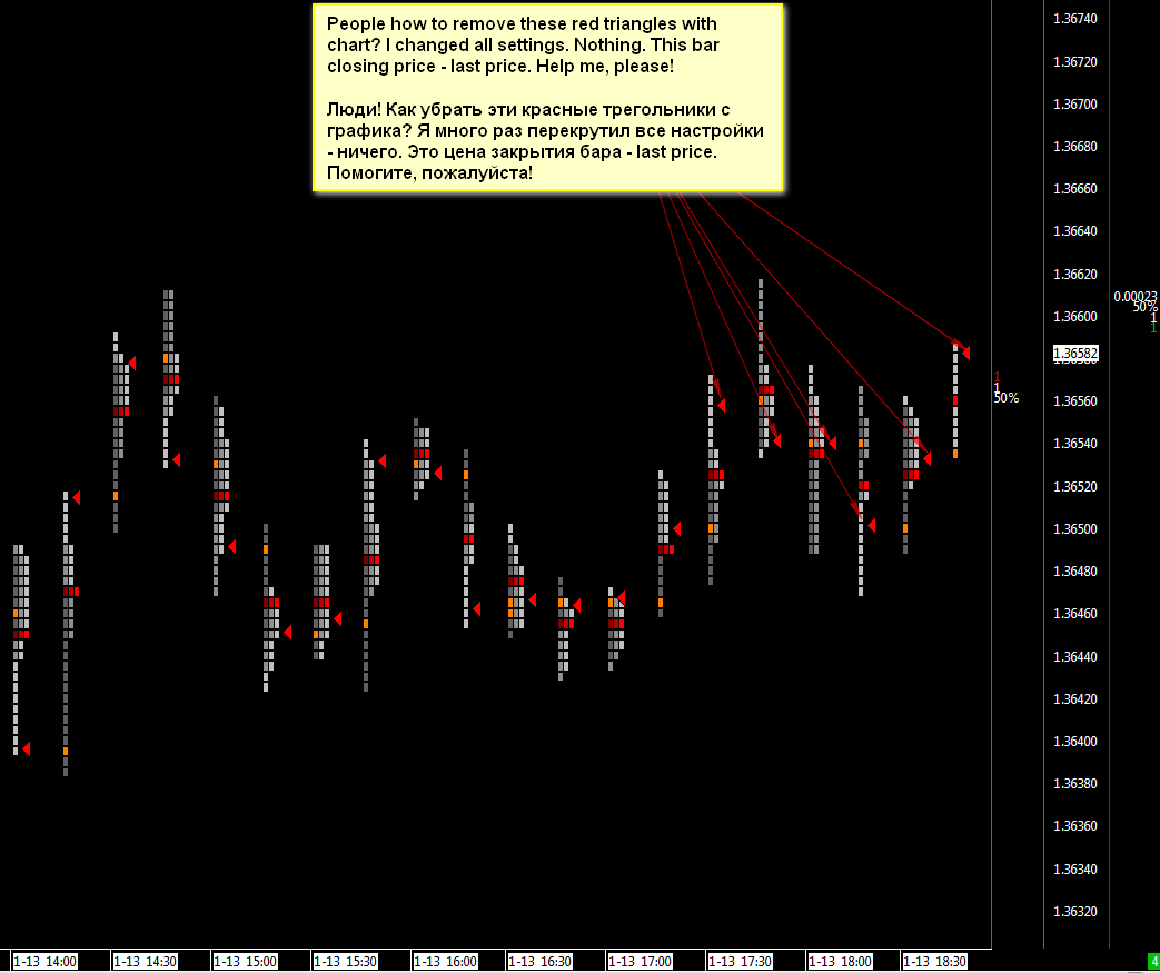 People how to remove these red triangles with chart? I changed all settings. Nothing. This bar closing price - last price. Help me, please!